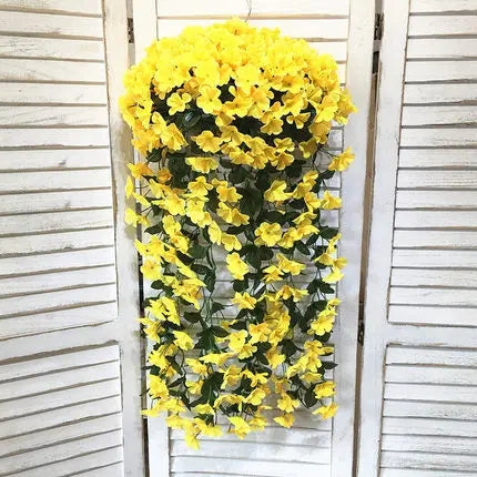 - VIVID ARTIFICIAL HANGING ORCHID BUNCH: Use this artificial orchid bouquet to add a classic floral flavor to any space or event! This bouquet of flowers flows gracefully downwards from the main heart of the plant, creating a plump appearance.